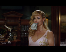 Comp Straight forward shot of the actress performing as if she were about to conjure up some cash and spit it out of her mouth, the problem is she only cracked a smile. Using a series of roto shapes I animated them individually to manipulate and displace her mouth to open up and have a wad of cash come out of her mouth. The money was CG, I created a drop shadow from the money render, and matched the color to a reference frame of real cash in the shot. I added subtle things like bounced red light onto the money from her red lipstick, richer drop shadows, and even reflections of the money in her eyes… all though you’d never see it, |